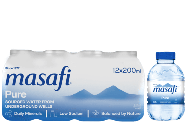 Enjoy the refreshing taste of Masafi Pure Water, sourced from the underground wells of the Masafi Mountains.